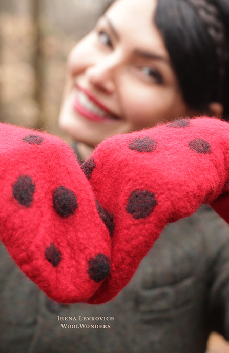 KIT (in 5 color variations your choice) FOR Mittens with ExtraFineMerino+all decorative fabric and fibers. Includes everything you need in order to make this unique accessory for yourself or as a present for your best friend.